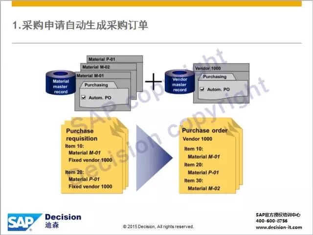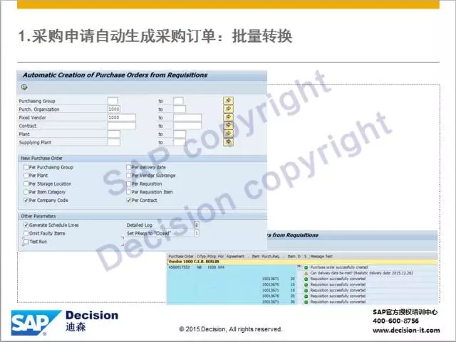 1)将已分配货源的采购申请,自动转换成采购订单,相同货源的采购申请可按条件合并到相同采购订单;