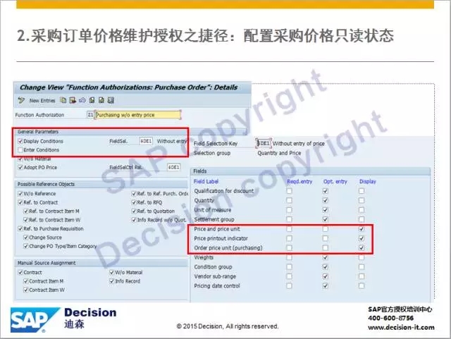 背景:随着采购业务的逐渐规范化、制度化,采购价格通常会事先确定,而不必在采购下单时维护,因此,为减少下单时意外修改到定价等关键信息,可通过标准功能快速实现对必要字段的保护。
