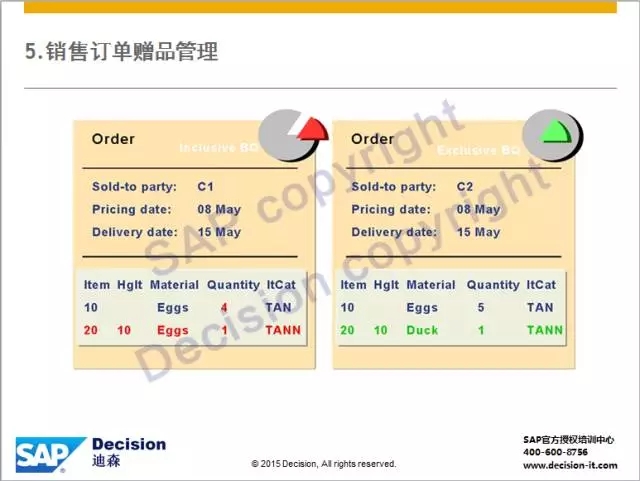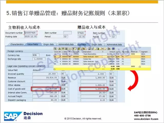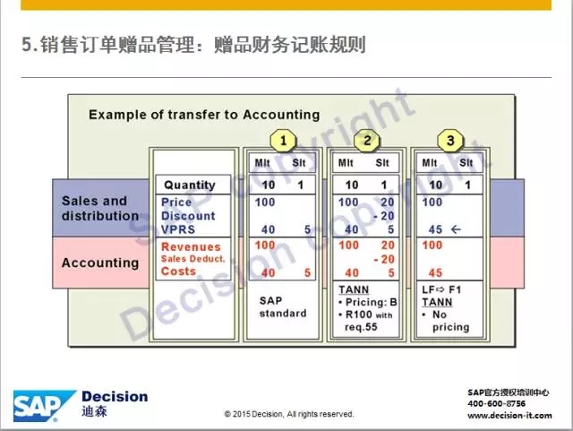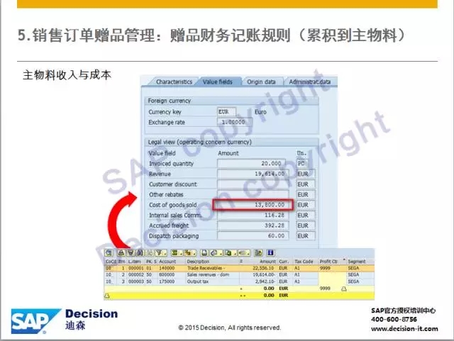 3)赠品价格为零,不体现收入,成本累积到主物料行项目的成本。