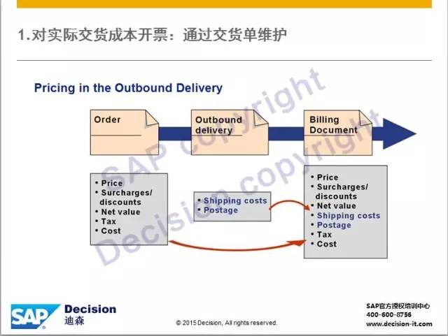 方法一:不启用运输管理,将交货成本(如:运费、包装费、邮费等等)维护在交货单中,开票时自动显示。
