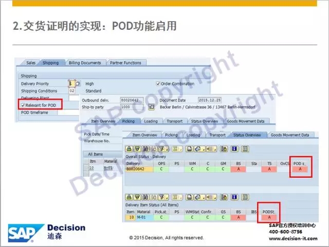 2)在交货单创建时可以检查状态概览中存在POD状态(A为未处理,C为已处理)。