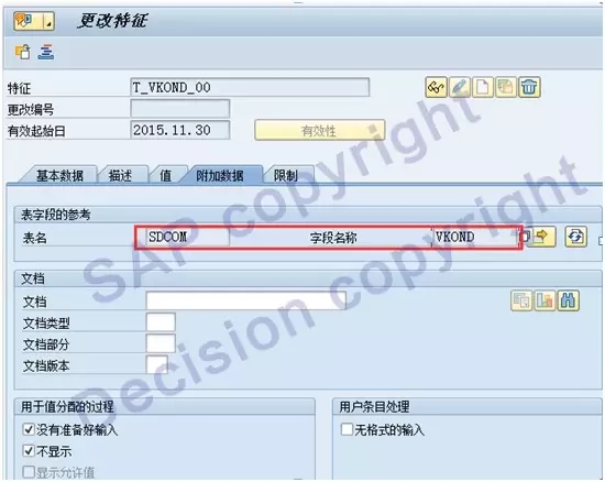 另外,针对特性值对应的变式维护,除了以上的维护相关性语句外,也可以直接在特征值中直接维护,同时也不需要建立T_VKOND_00中间特性,如下图所示: