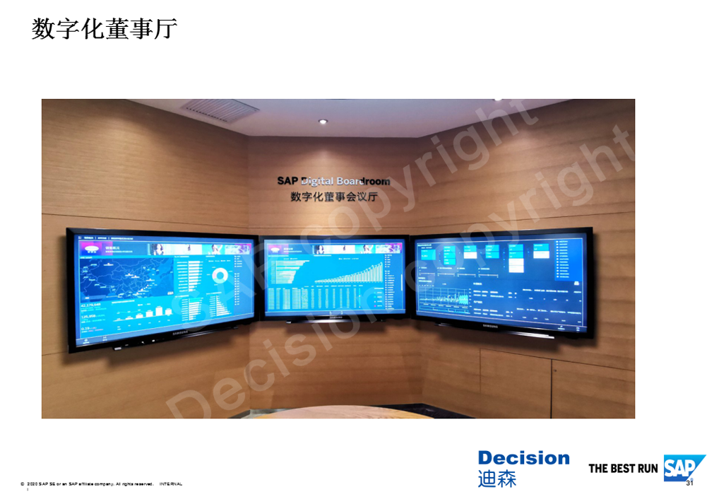 创建数字化董事厅首先基于SAC的数据故事,然后通过一些直观的拖放,建立一个多屏互动的展示。制定好显示的故事后, 就把它拼合成数字化董事会,制定报告显示的方式,还包括在多个屏幕中排列内容去做一些联动的设置,然后设定一些展示的流程,创建一些数据故事线,根据不同的主题进行监控,发现,洞察和后续的互动。