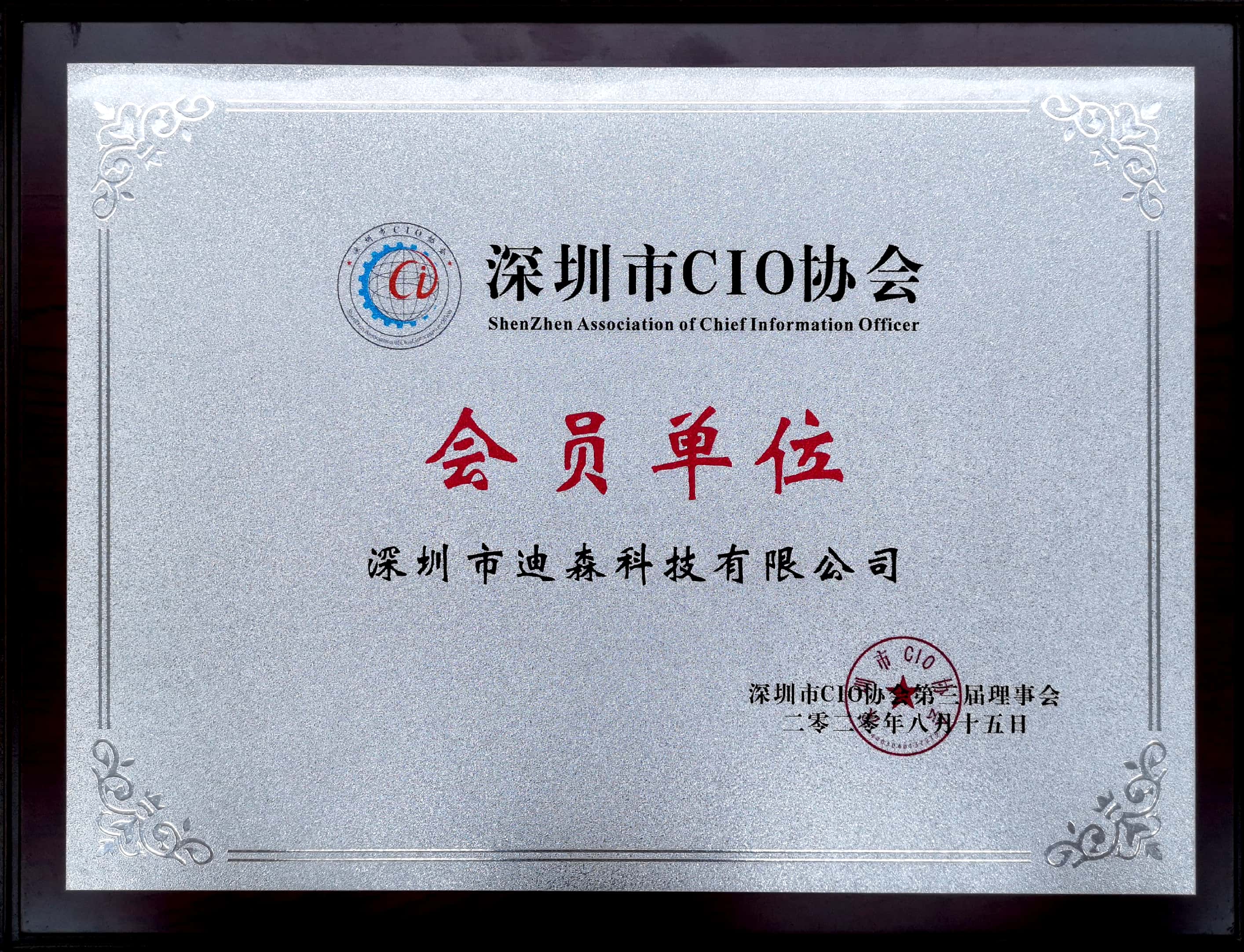 晚宴时分,迪森作为深圳CIO协会会员,由协会领导授予了会员牌匾,正式加入CIO大家庭。