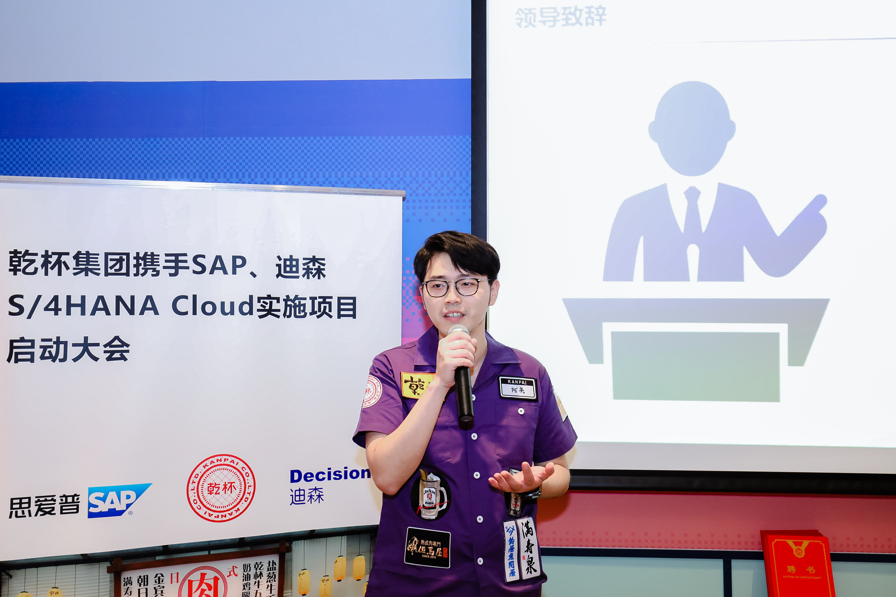 同样,为了表达SAP、迪森对乾杯的支持与帮助,乾杯江总特为现场嘉宾颁发制服,感谢SAP、迪森为助力乾杯数字化转型协作共进,SAP与迪森也将积极参与,为乾杯数字化建设贡献一份力量。