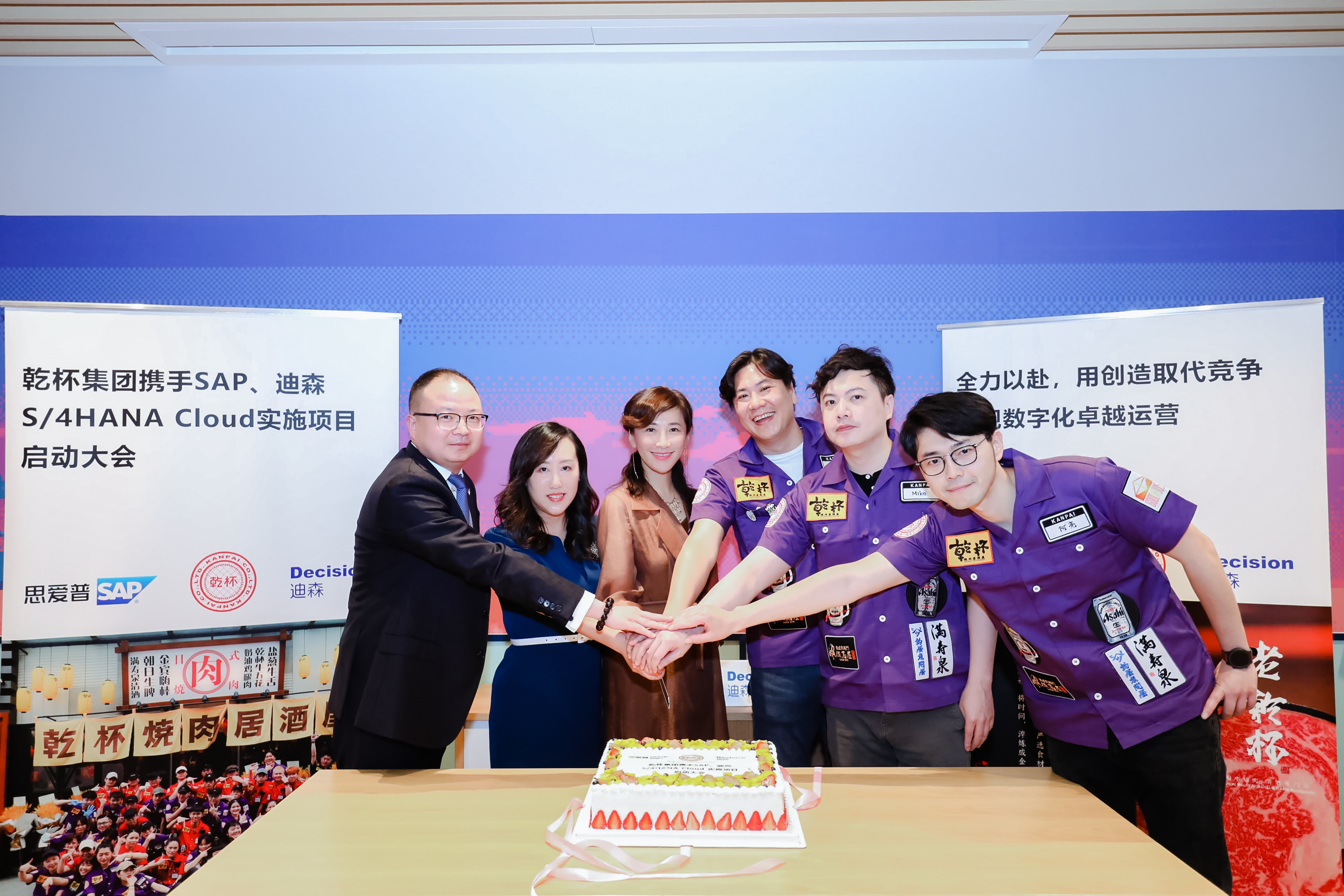 最后,由乾杯、SAP、迪森三方代表进行了切蛋糕仪式,共庆启动大会圆满成功。