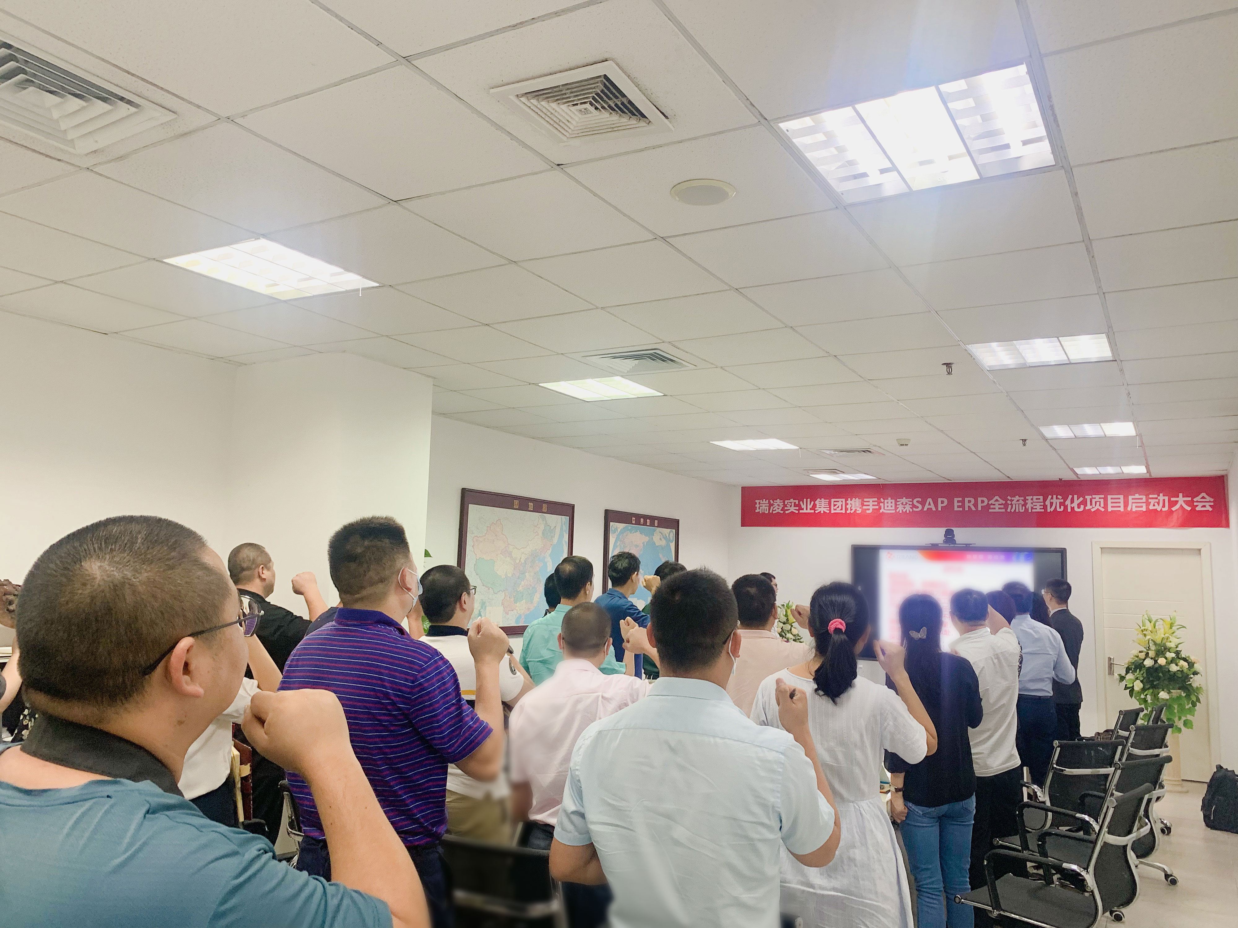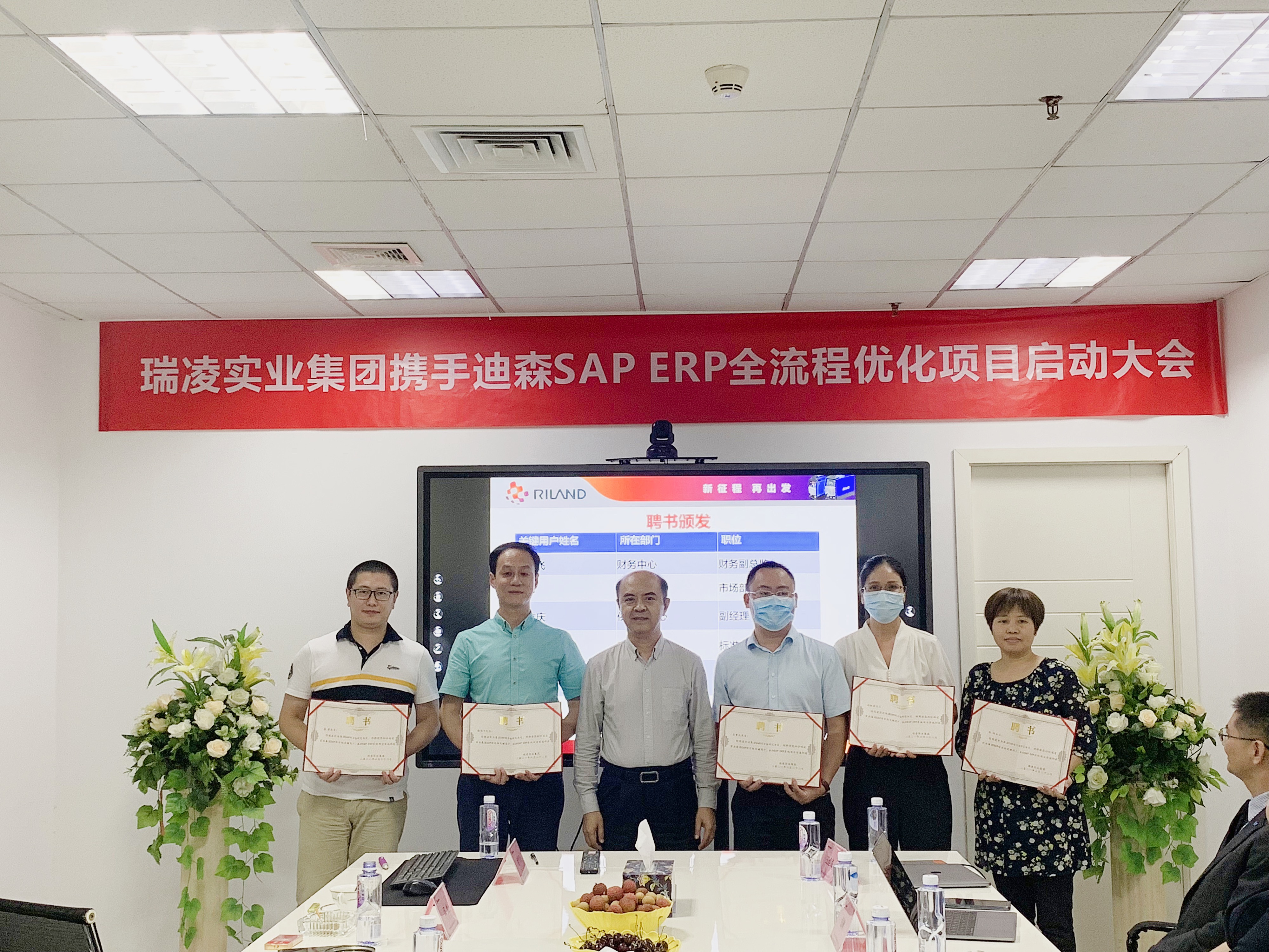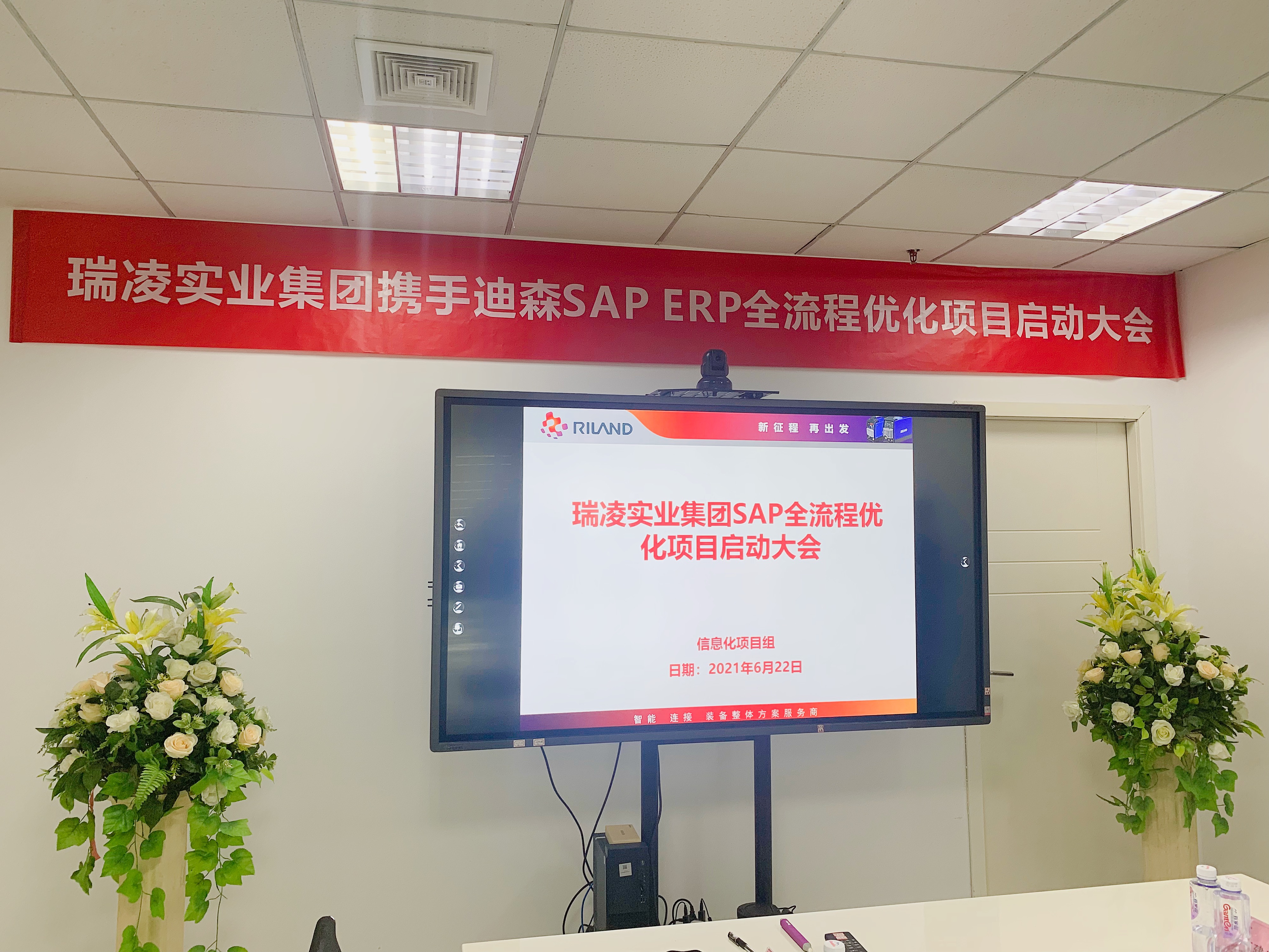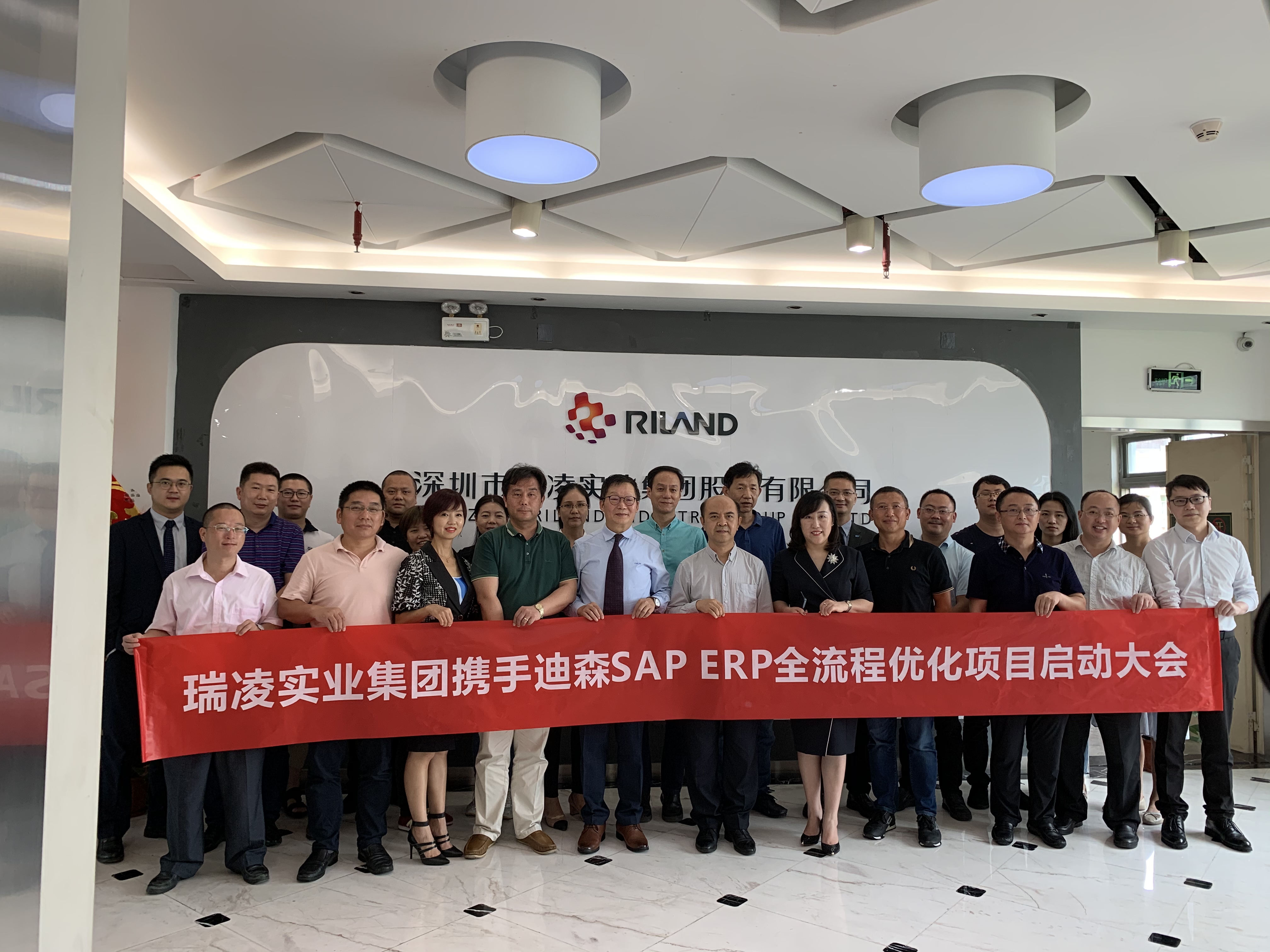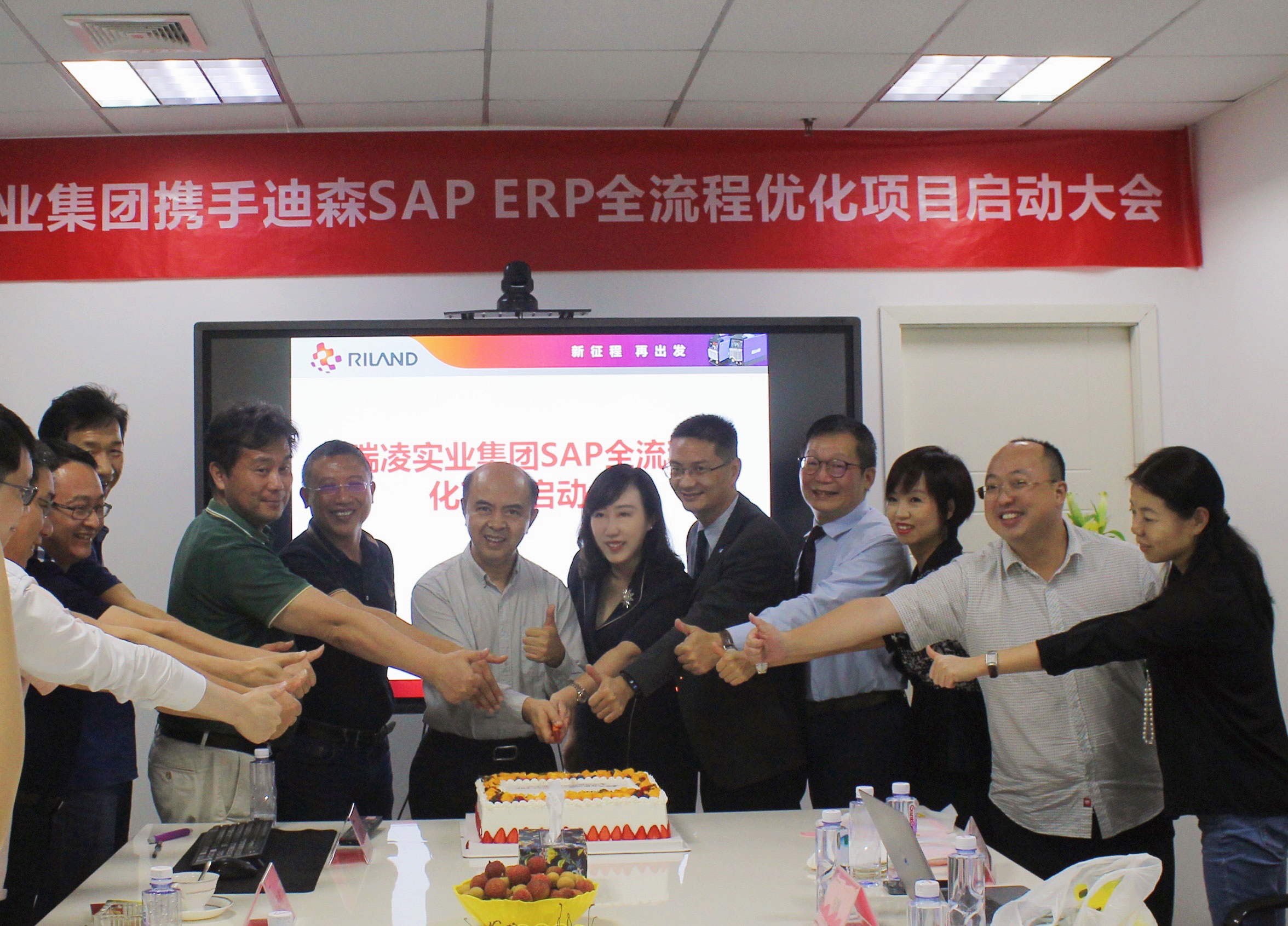 次 6月22日,瑞凌实业集团携手迪森SAP ERP全流程优化项目启动大会成功举办。瑞凌实业集团董事长邱总,副总经理查总,成总、王总、潘总,迪森总裁倪总,副总裁王总、曾总,项目经理方总以及项目组双方成员共同出席了本次会议。