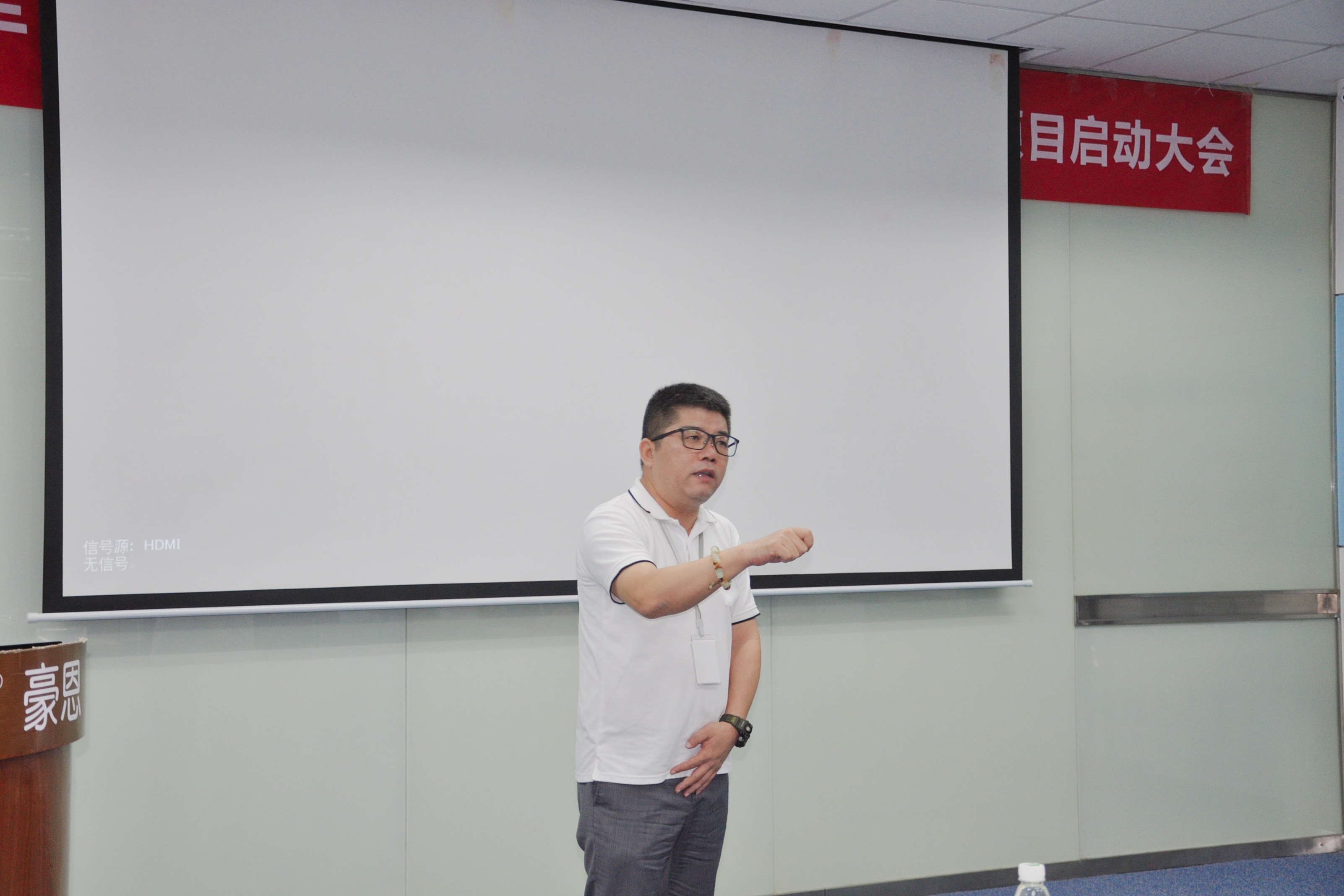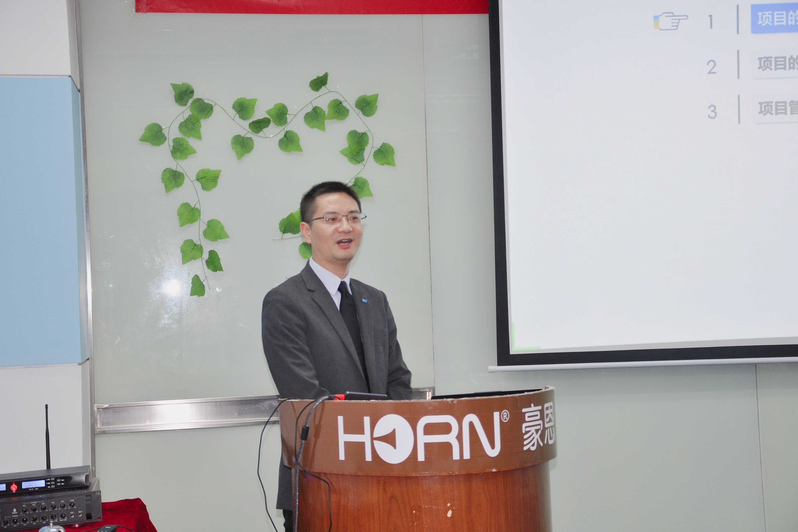 豪恩声学项目经理酆总在发言中阐述了此次项目的实施背景、需求、奖惩制度等,并讲到希望大家按时按质完成项目成功上线,在项目过程中需要保持思想一致,积极参与,让SAP系统真正实现企业的精细化、数字化运营管理。