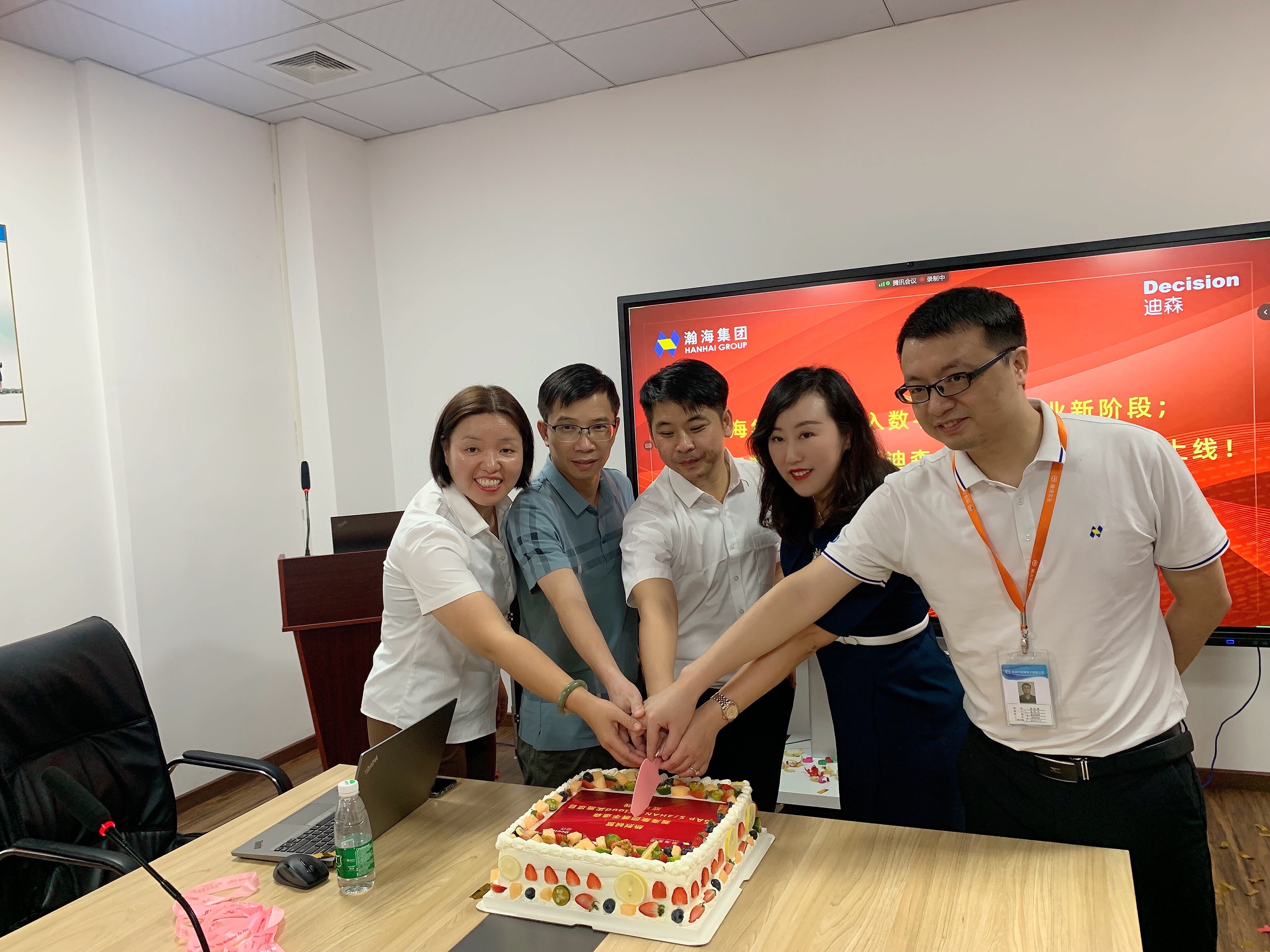 举行切蛋糕仪式后,在瀚海集团张总的带领下,大家共同庆祝瀚海集团携手迪森SAP ERP项目成功上线,瀚海集团正式迈入数字化智慧企业新阶段!