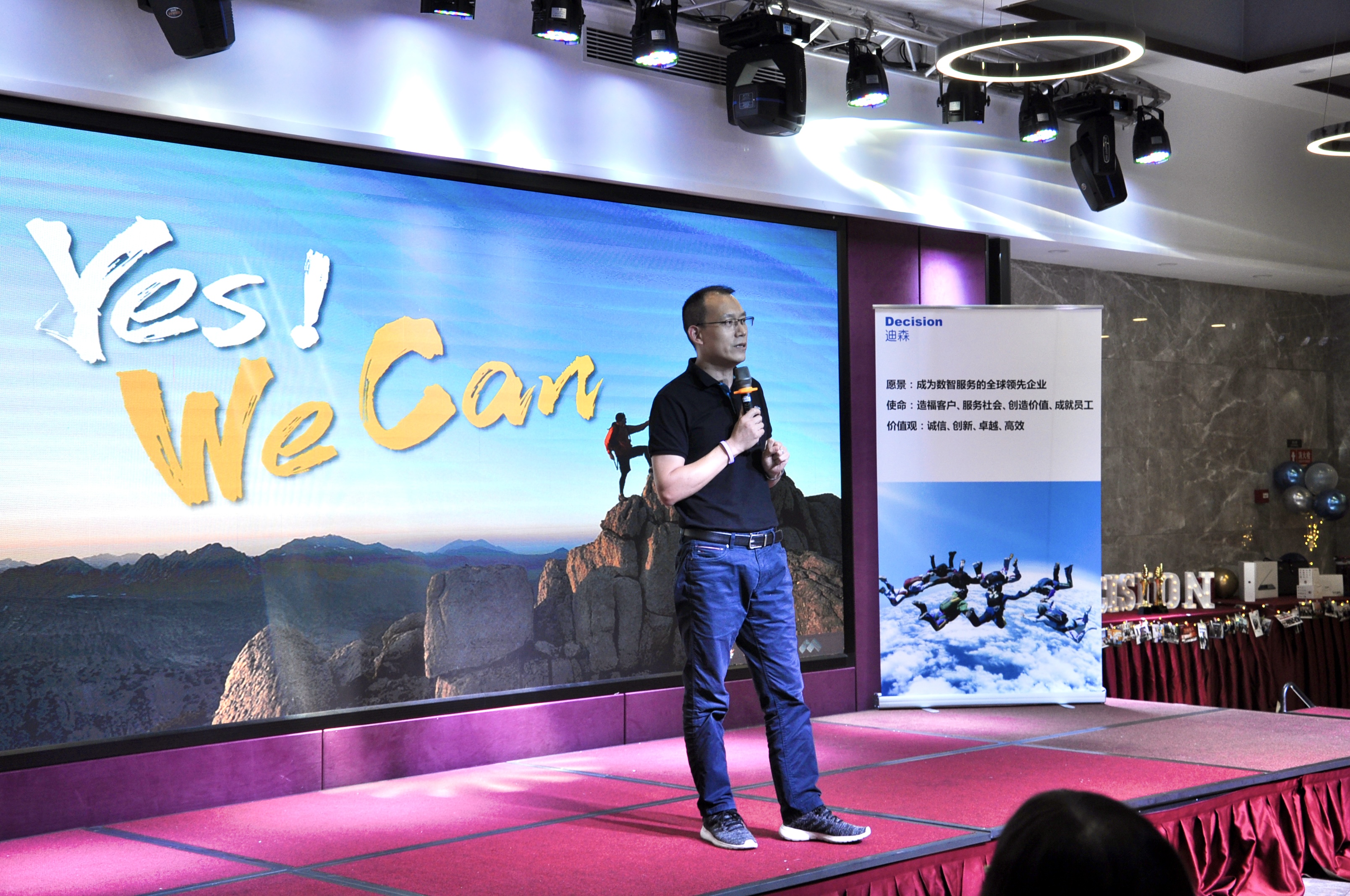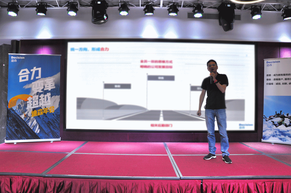 最后,由迪森副总裁迟总上台致辞。他主要以「蜕变 创新 制胜」为主题,展望了公司未来的发展战略,并对迪森人表达了期许:希望大家能够紧跟数智化时代的脚步,与时共进,用专业提升素养与能力,以诚信服务与高价值交付为目标,为客户提供更高品质的服务,携手制胜未来!