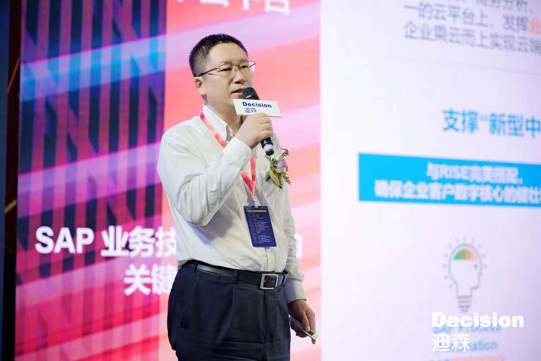 SAP 中国区副总裁何总发表致辞:“我们正面临百年未见之大变局,SAP 面对变化,也在迎接变化,通过产品的创新快速帮助客户实现数字化建设,从赋能的角度更好地帮助客户规避数字化转型风险,携手合作伙伴更紧密的合作帮助客户创造收益,而迪森是 SAP 最具影响力业务合作最全面的重要合作伙伴之一,SAP携手迪森能将助力企业创造价值,成就企业一个更加创新的未来。”
