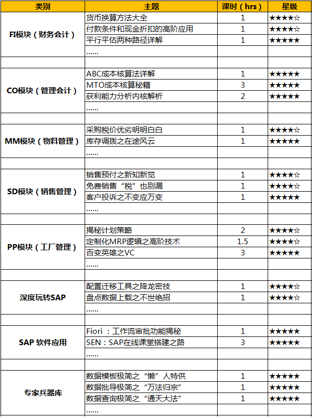 黑金会员特权二:SAP在线课程10个课时