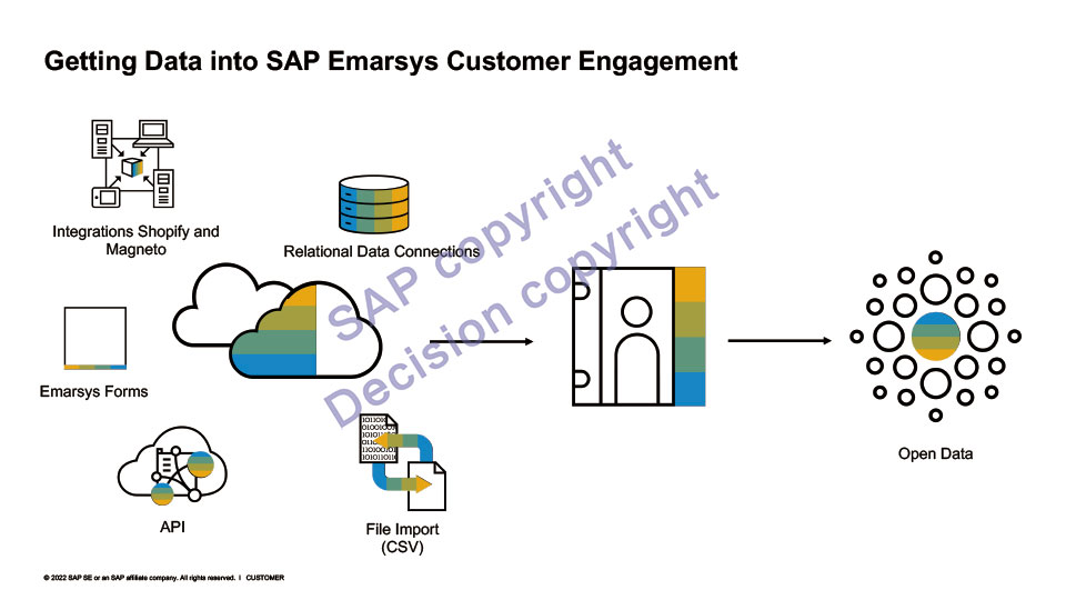 SAP Emarsys允许用户指定第三方数据库。在默认情况下,大部分数据是在Emarsys中维护的,由于安全性或其他方面原因,Emarsys允许相关的数据保存在用户的第三方数据库,这功能称之为Relational Data,只需在Emarsys中去进行相应的配置,让Emarsys与第三方数据进行连接,将数据上传给Emarsys即可,可帮助企业更灵活的使用Emarsys。