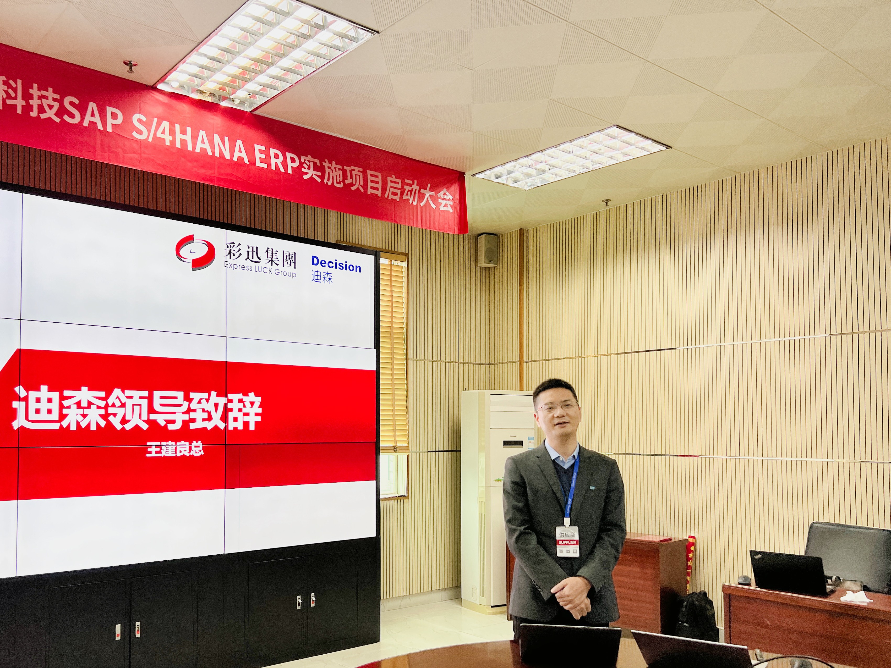 迪森杨经理介绍了实施范围、实施方法、实际计划、风险管控等内容,并讲到:“SAP就是企业可持续发展的强心剂,本次项目实施后,SAP 系统将作为彩迅核心管理平台,帮助集团打好数字化基础,保持竞争优势,提升企业集团管控能力、供应链运营能力、信息支撑能力以及人才培养能力。”