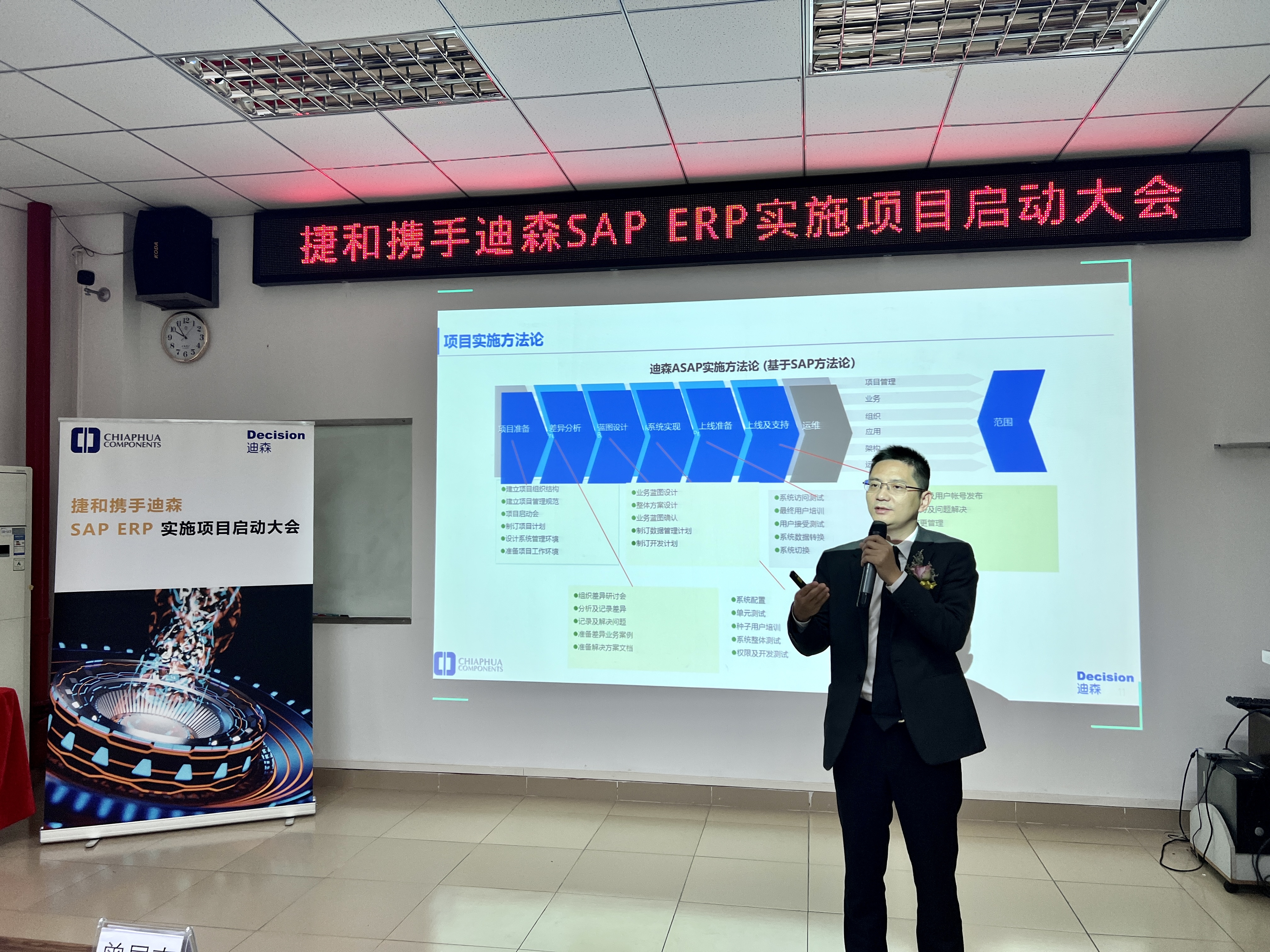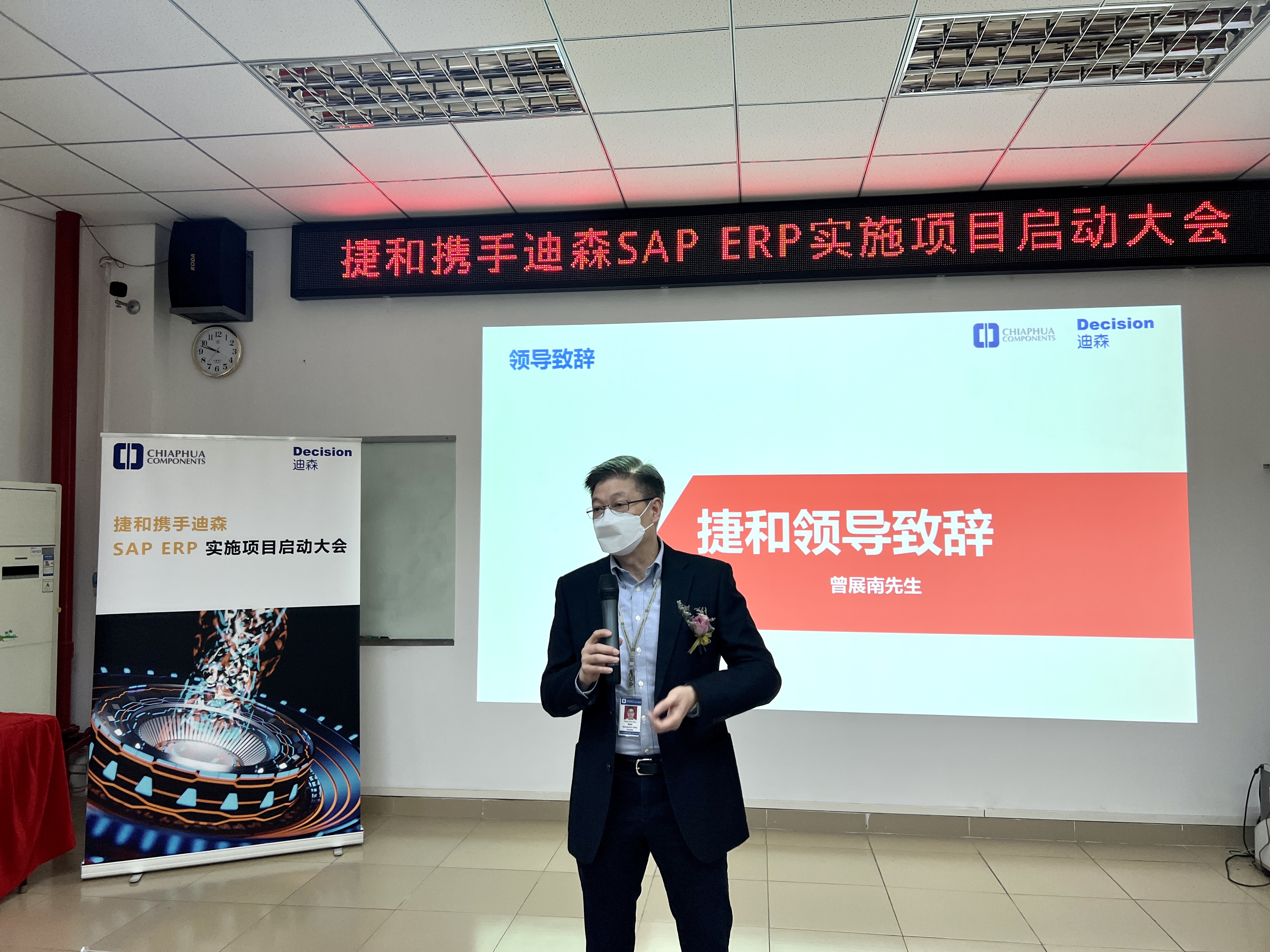 SAP ERP项目意义重大,捷和经过长时间思考,决定选择迪森正式开启这个项目,落实到位。数字化转型不仅是技术或系统,它是关于价值、流程、管理等环节的优化及变革,希望集团内部能多参考学习迪森专业的实施管理经验,由IT部门及各业务部门齐心协力,争取将捷和快速打造成为一流的数字化领先企业。
