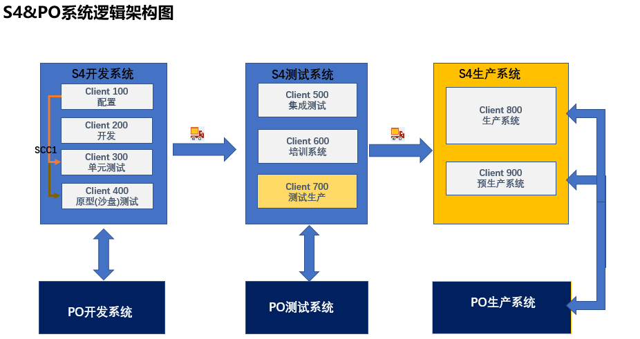 在硬件架构应用上,采用标准SAP实施硬件配置,配置、开发、测试(单元测试、集成测试)、生产业务相互剥离,保证数据的纯净和应用传输的清晰。