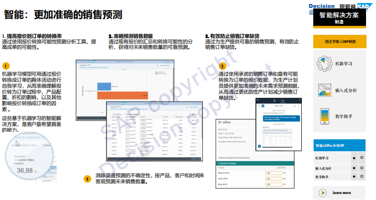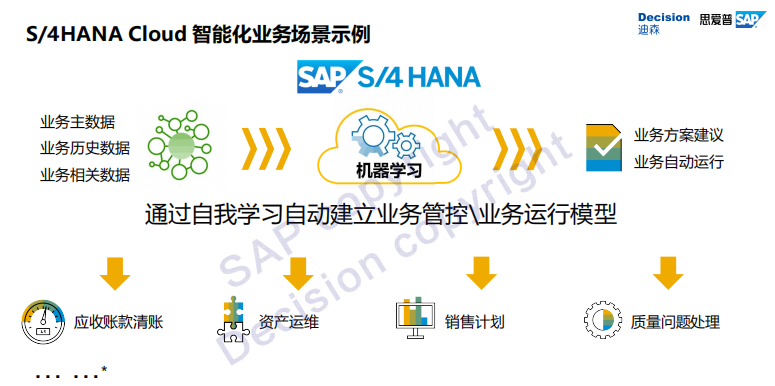 随着时代的快速发展,2020年,超过80%的世界500强企业将成为通过行业协作云平台提供数字化转型服务的供应商。Harrison介绍到,S/4 HANA Cloud将通过自我学习自动建立业务管控和业务运行模型,来提供智能化的业务场景。