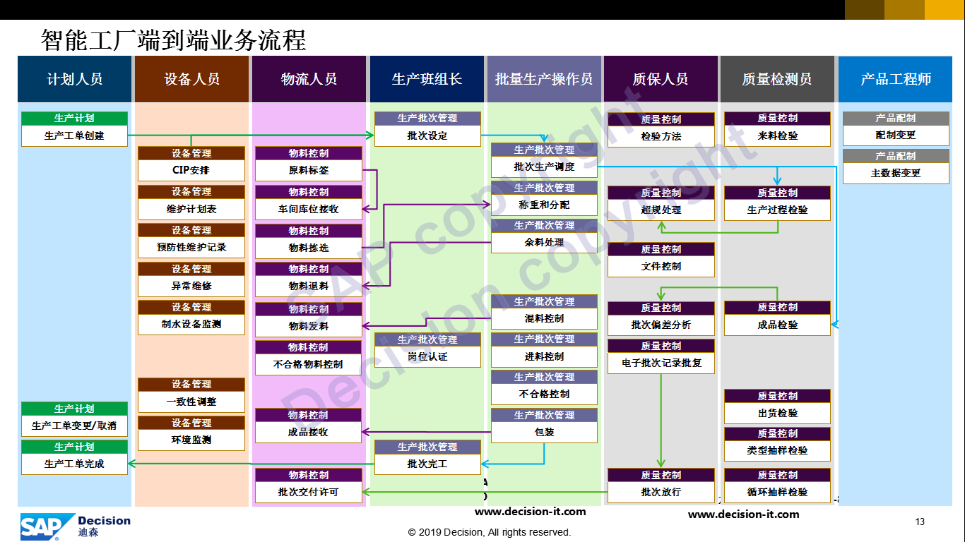 - SAP解决方案就是完全具备智能工厂的特征,强调的是互联智能生产信息化。