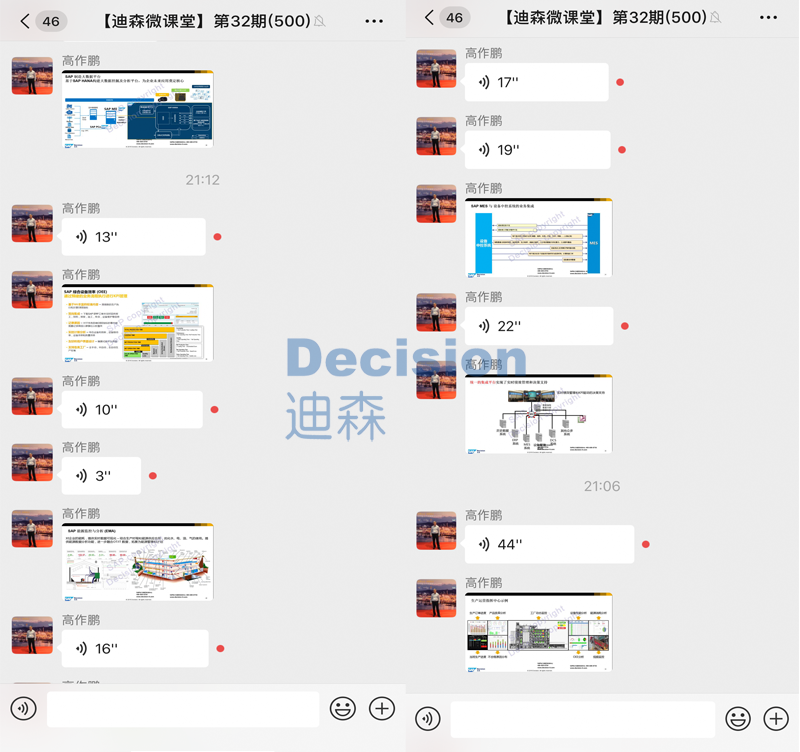 接下来,SAP解决方案经理高作鹏隆重登场,近距离与大家进行交流学习,【迪森微课堂】第32期SAP MES智能工厂解决方案-正式以语音+图片+文字的形式展开。