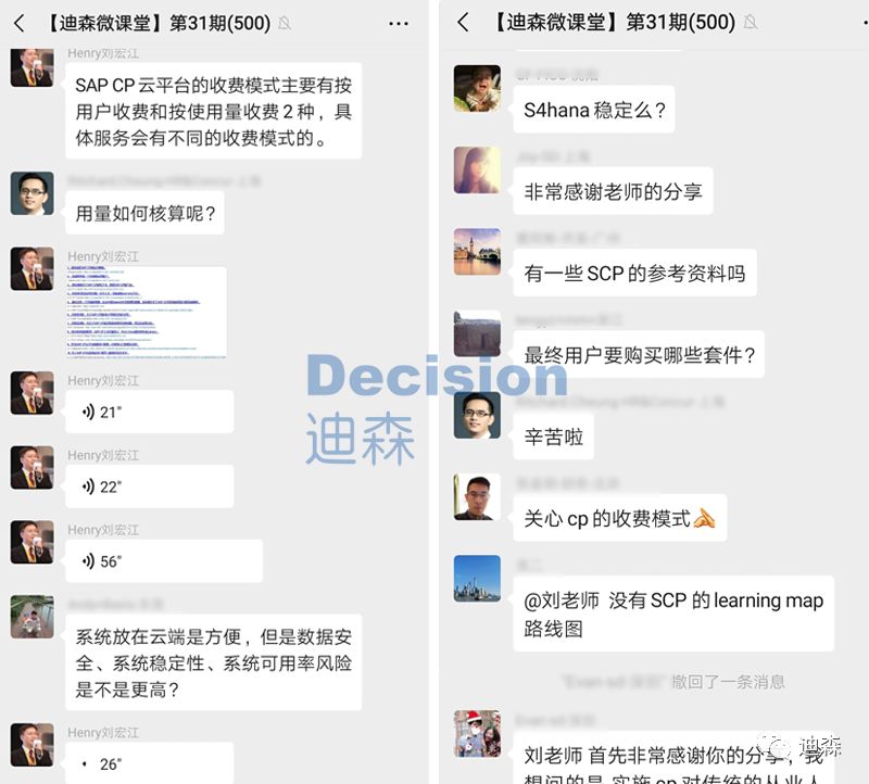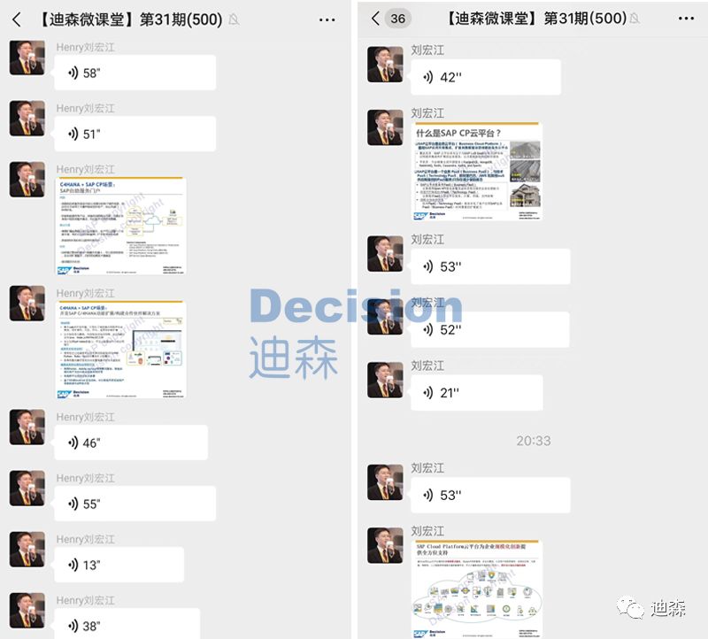 次 ▼9月25日【迪森微课堂】第31期准时与大家见面了,本期【迪森微课堂】由SAP云平台大中华区卓越中心负责人刘宏江担任主讲嘉宾,与大家分享了SAP Cloud Platform落地中国后所带来的变革创新,500位参课名额早早就被占据一空,本期内容受到了来自国内外SAP顾问圈小伙伴的热烈欢迎!大家都受益匪浅,收获颇丰!