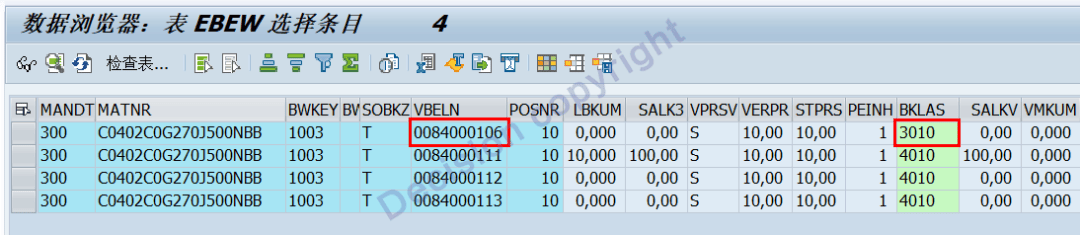 1. For material master data valuation classes, the initial maintenance must be correct! Subsequent modifications require clearing the original E and T inventory levels, creating a new delivery note or sales order, and re-issuing the goods. Only then will the system store the correct valuation class in EBEW.