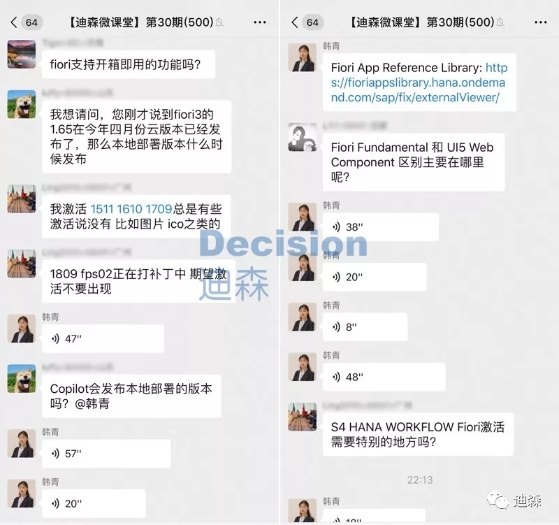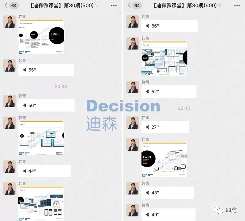 接下来,SAP认证讲师韩青闪亮登场,大家非常期待零距离与大咖交流学习;【迪森微课堂】第30期SAP Fiori迈入3.0新时代-正式以语音+图片+文字的形式展开。