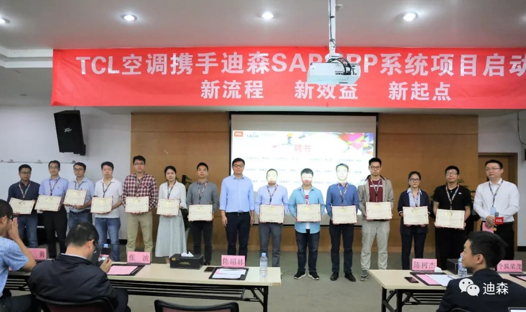 2019年5月5日上午,TCL空调SAP ERP项目启动大会隆重召开。TCL空调事业部总经理及其管理团队、TCL控股执行力办公室总监、TCL控股数字化转型中心总监、TCL项目组成员,迪森总经理、副总经理、总监、项目经理和项目组全体成员等参会,共同见证了这个重要的时刻。