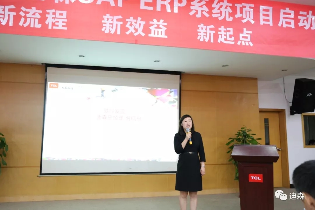 在启动会上,迪森倪总讲到,管理的提升会带来公司效益的提升,和每一位员工都是息息相关的,希望我们与TCL空调携手的SAP项目,成为以人为本,全员参与的项目,我们要充分发挥团结合作的精神,通过这个项目,我们希望可以实现财务和业务一体化的管理体系,提升重点经营能力和全面决策能力,同时也能为TCL空调培养出一支精英的队伍。希望在大家齐心协力和辛勤付出下,TCL空调ERP项目能够顺利推进,成效显著,预祝TCL空调ERP项目上线成功!