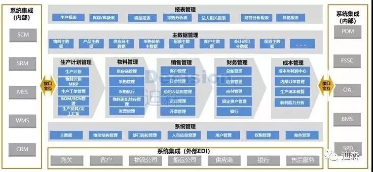 围绕SAP为核心建立统一管理的平台,迪森基于SAP系统确定了“统一平台、统一数据、统一规则、统一流程、统一模板”的五项统一管控策略。