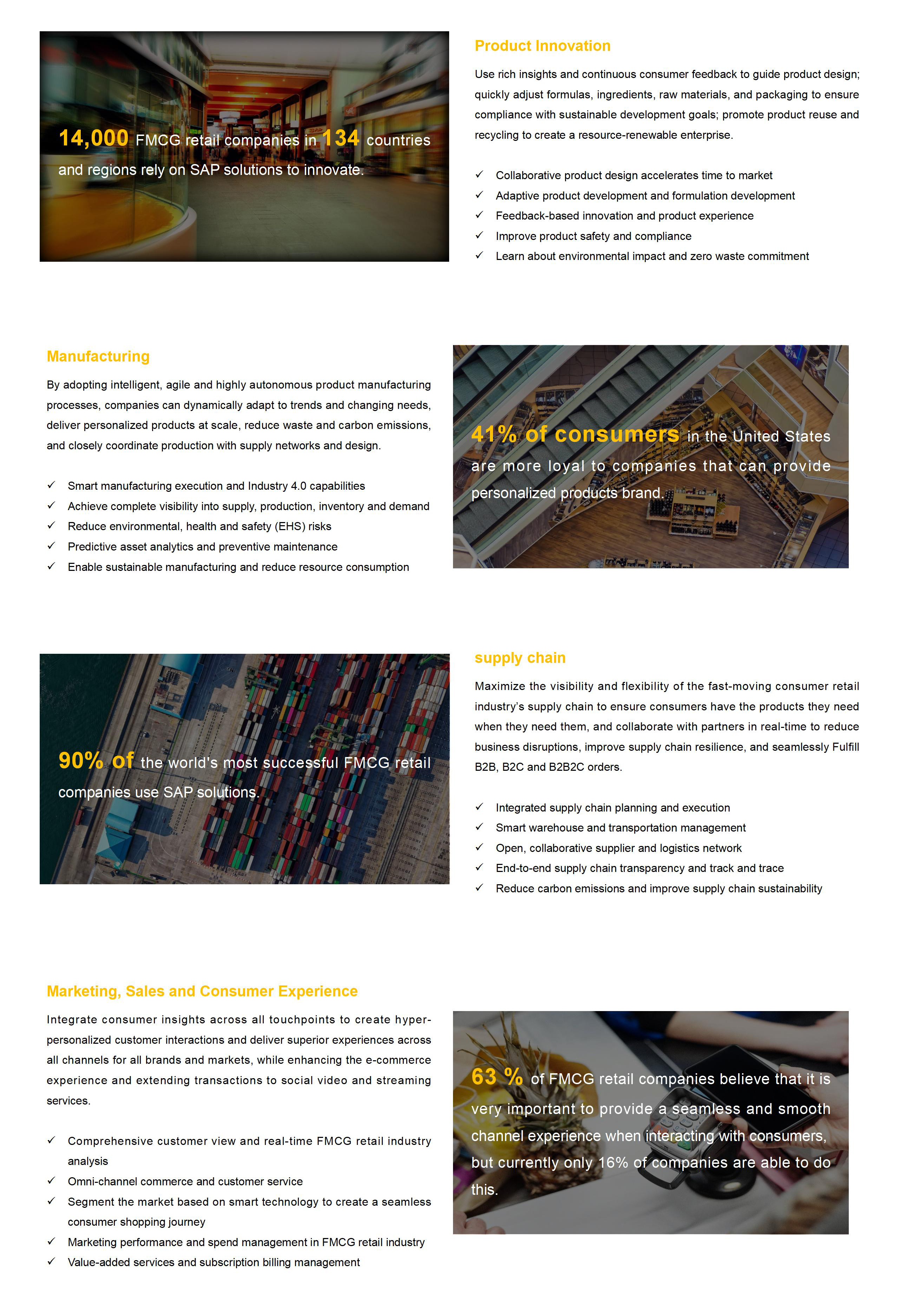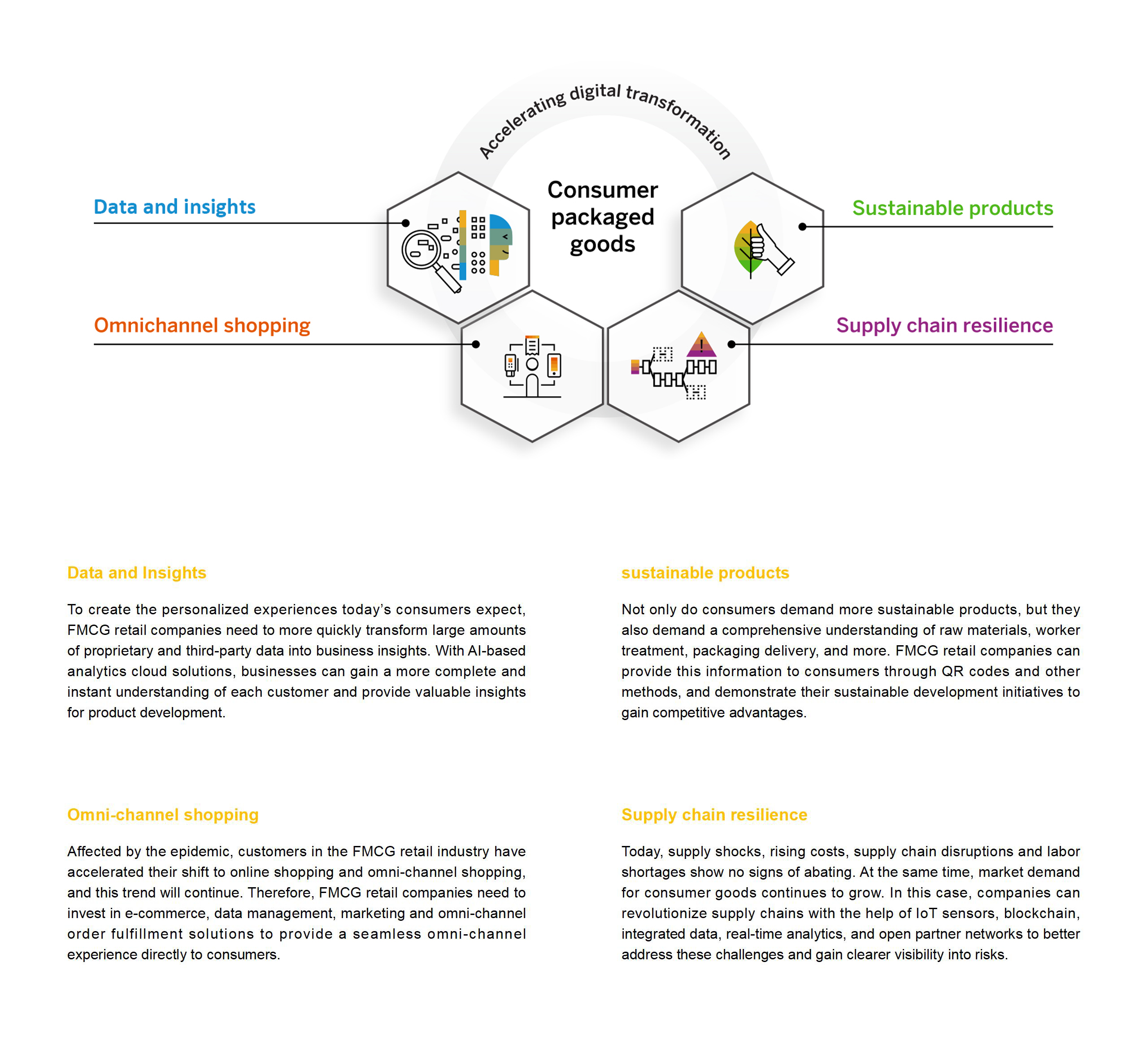 Now is an era when consumption calls for everything. They need high-quality services, a wide range of choices, and are gradually paying more attention to the value of goods. Coupled with the popularity of the Internet, consumers have a deeper understanding of their choices and wishes than ever before. This means that retailers must regard consumers as the center of traditional retail and fast-moving consumer goods supply chains, and require a new integration solution that is more powerful than any previous solution.